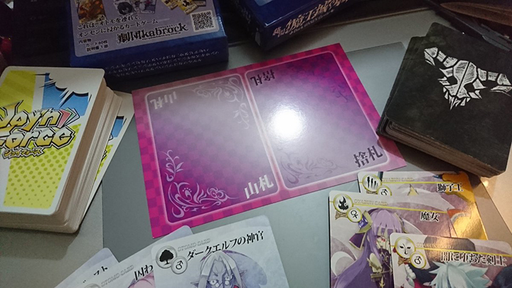 山札とか捨て札とかをわかりやすくするために下に敷いておくはがき大の厚紙!